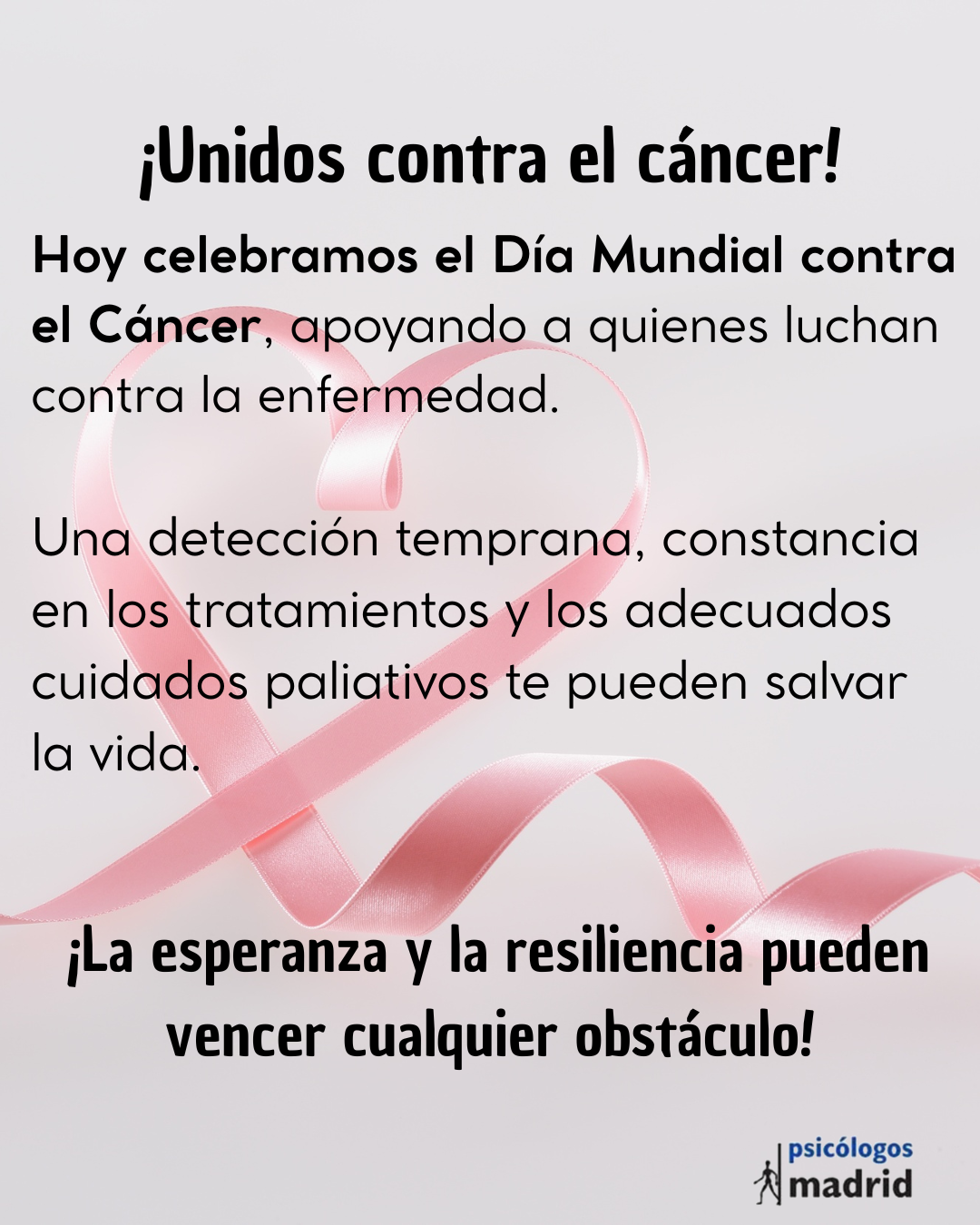 Hoy invitamos a visibilizar la importancia de la salud mental en el cáncer, a derribar estigmas y a recordar que nadie debe atravesar este camino en soledad.