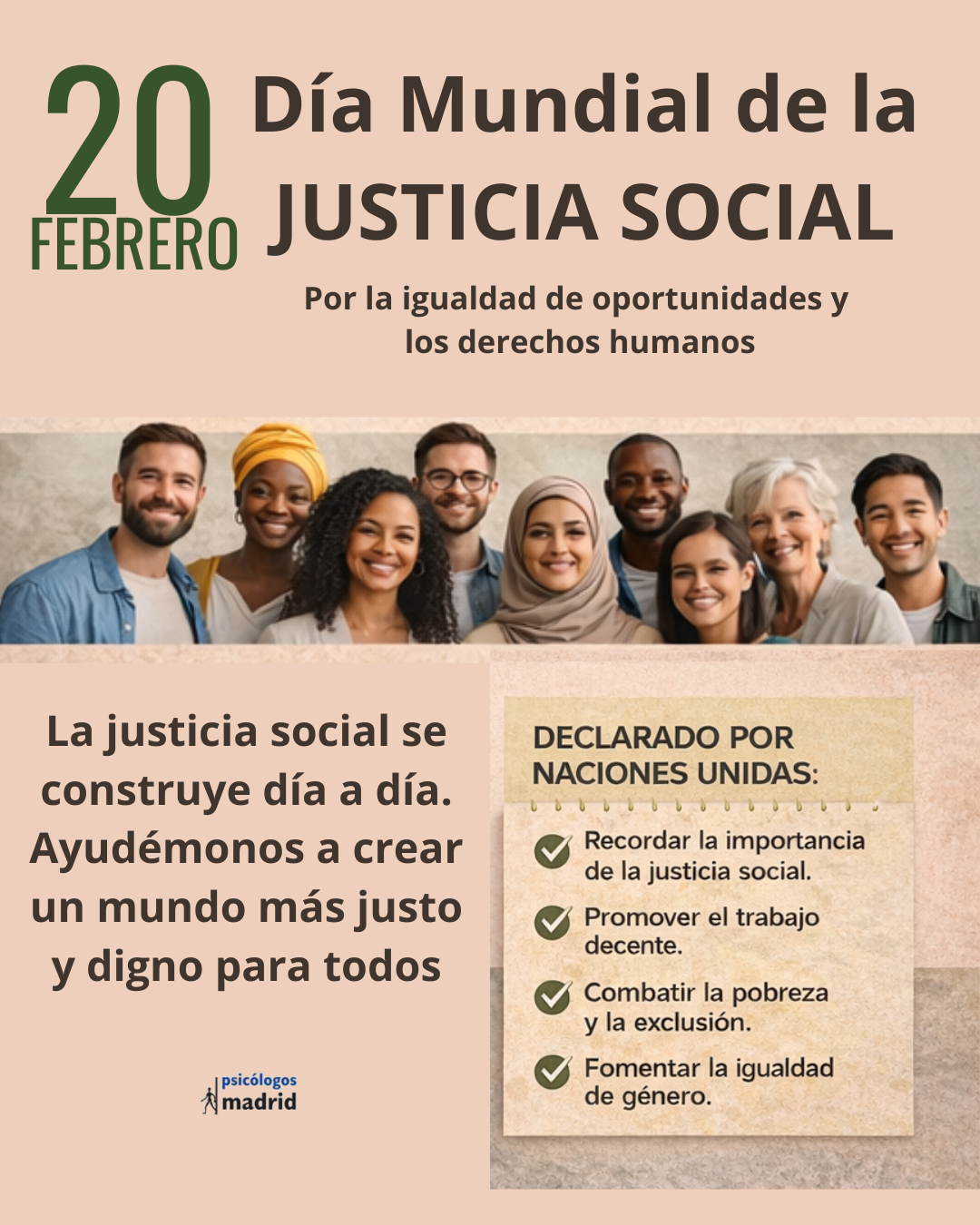 Cada 20 de febrero se conmemora el Día Mundial de la Justicia Social, una fecha impulsada por la Organización de las Naciones Unidas para recordar que la igualdad de oportunidades, la dignidad y los derechos humanos deben ser una prioridad global.